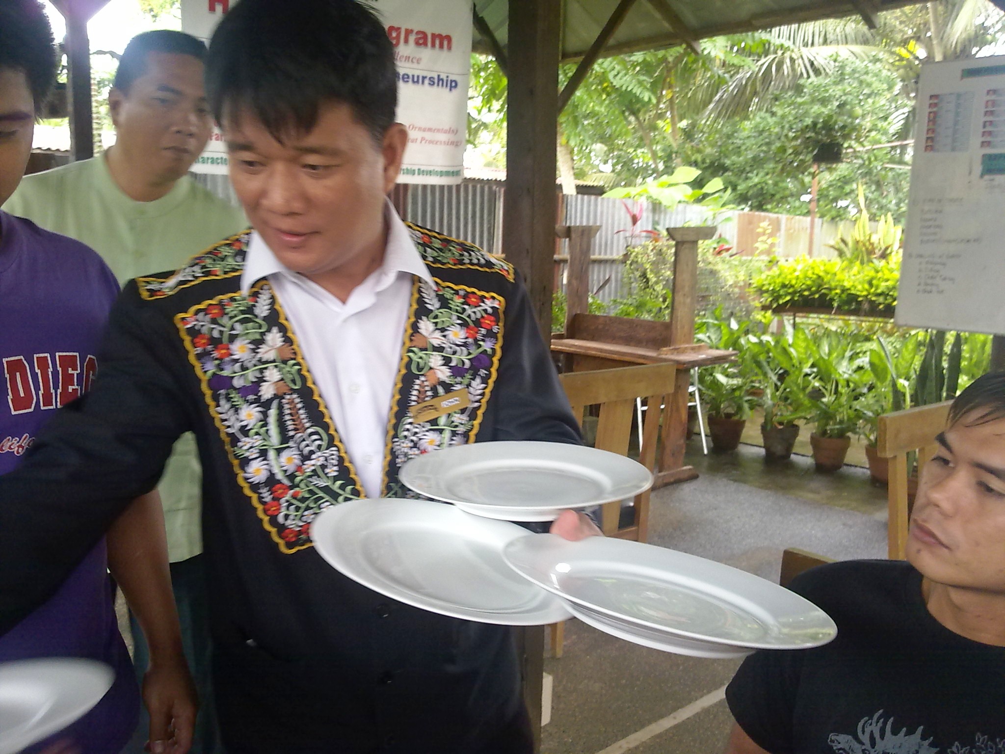 Kap John first introduced them to the common plates and utensils found in restaurants.