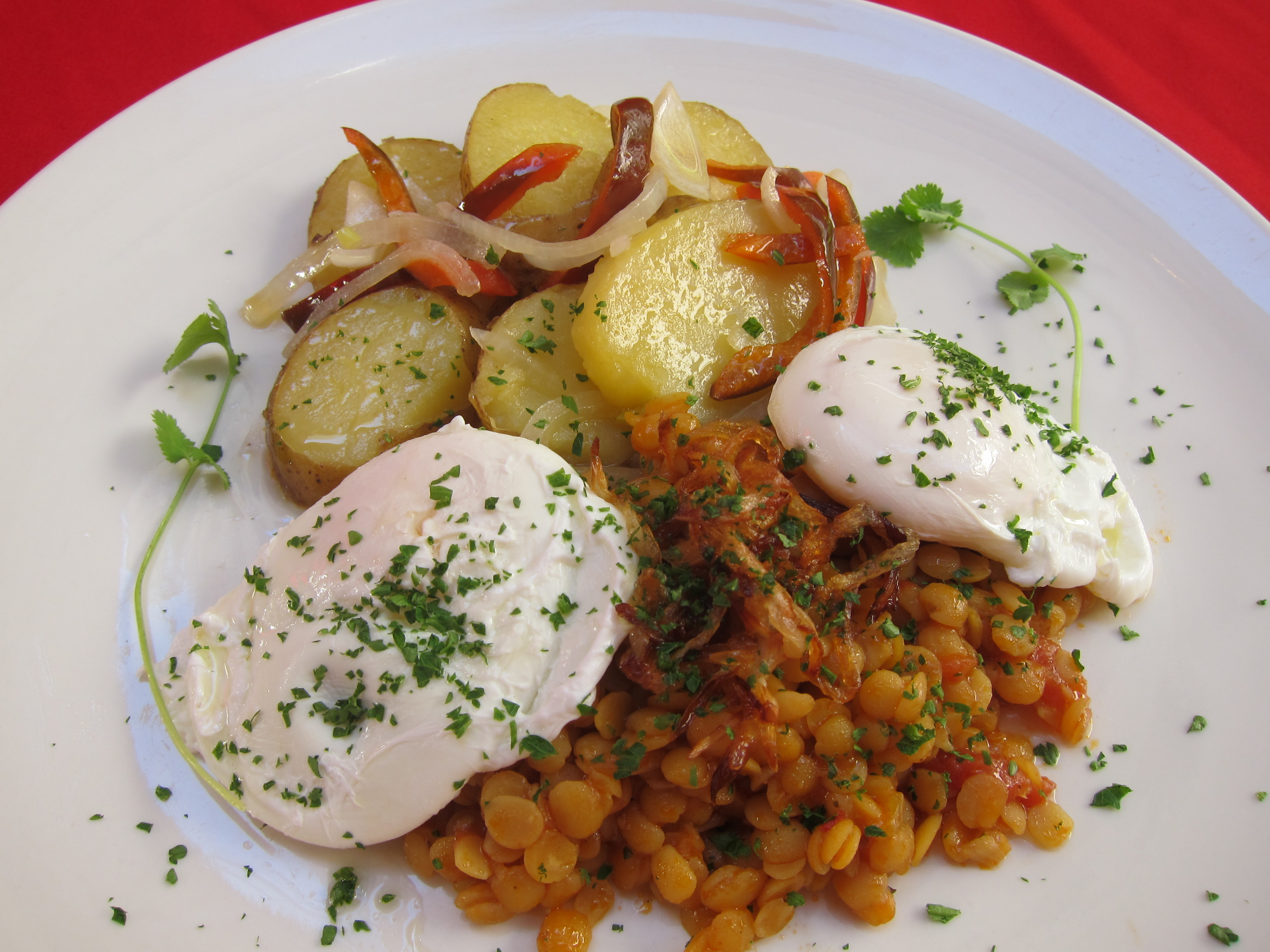 Yellow lentils and poached eggs