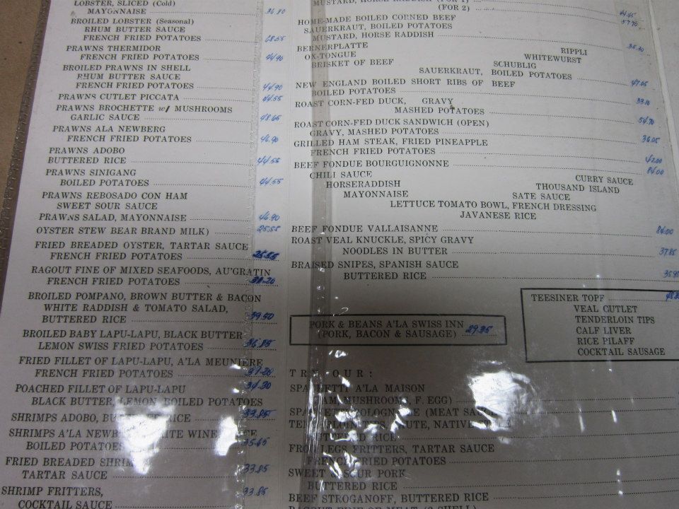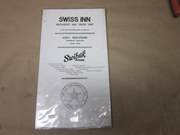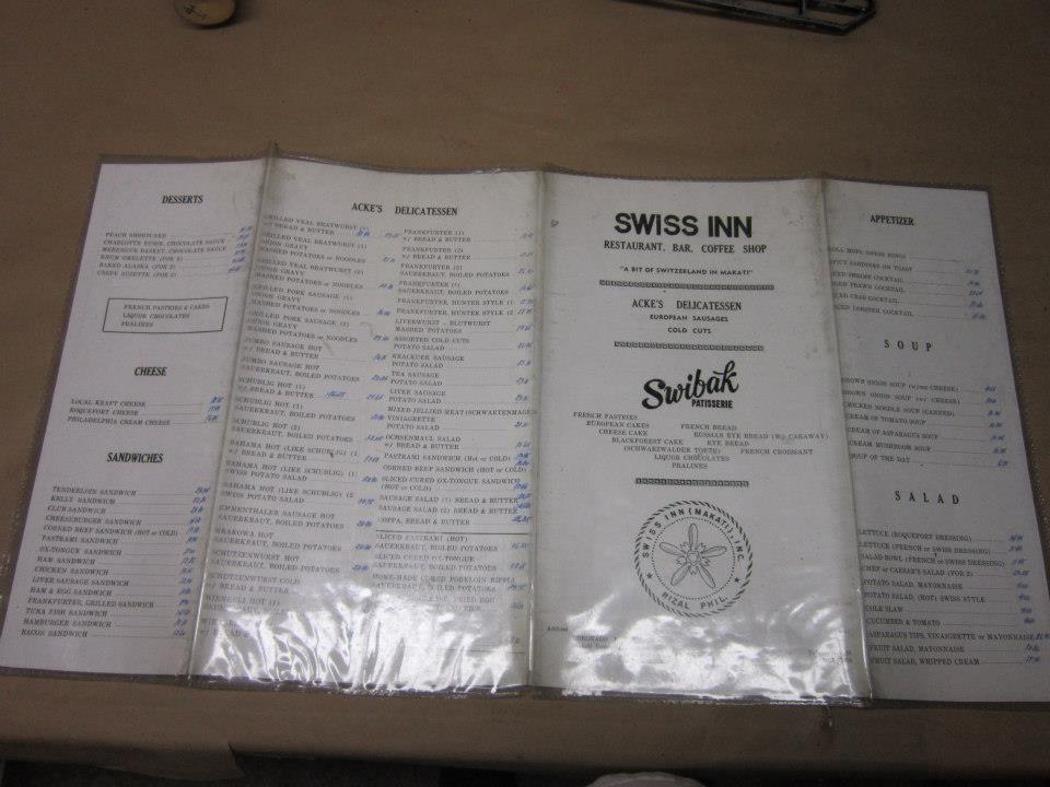 I was surprised and extremely happy to learn that the Swiss Inn in Manila still existed. My dad still has an old menu from the 40’s or 50’s, with Swibak Patisserie and Acke’s Deli, who was my Grandfather. How many of our parents and grandparents ate and had dates at this place, and maybe even read from this same menu? I’m happy to share.