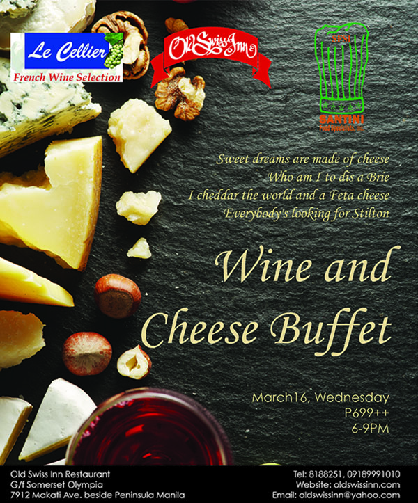 Catch our Wine and Cheese buffet on March 16 from 6:00-9:00 pm and you’ll surely remember why this classic combo goes well together!