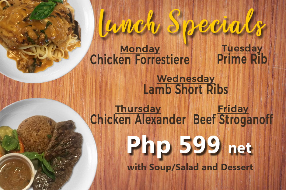 Think no more and bring your family, friends, and colleagues at Old Swiss Inn Restaurant in Makati. We are offering a 3-course lunch special with our bestsellers every weekdays from Monday to Friday every week.