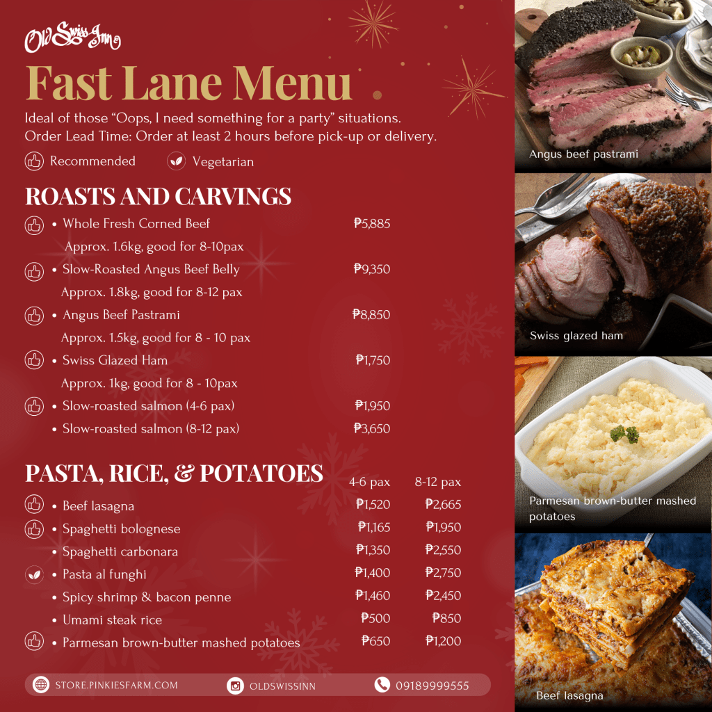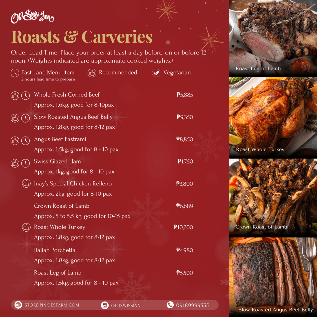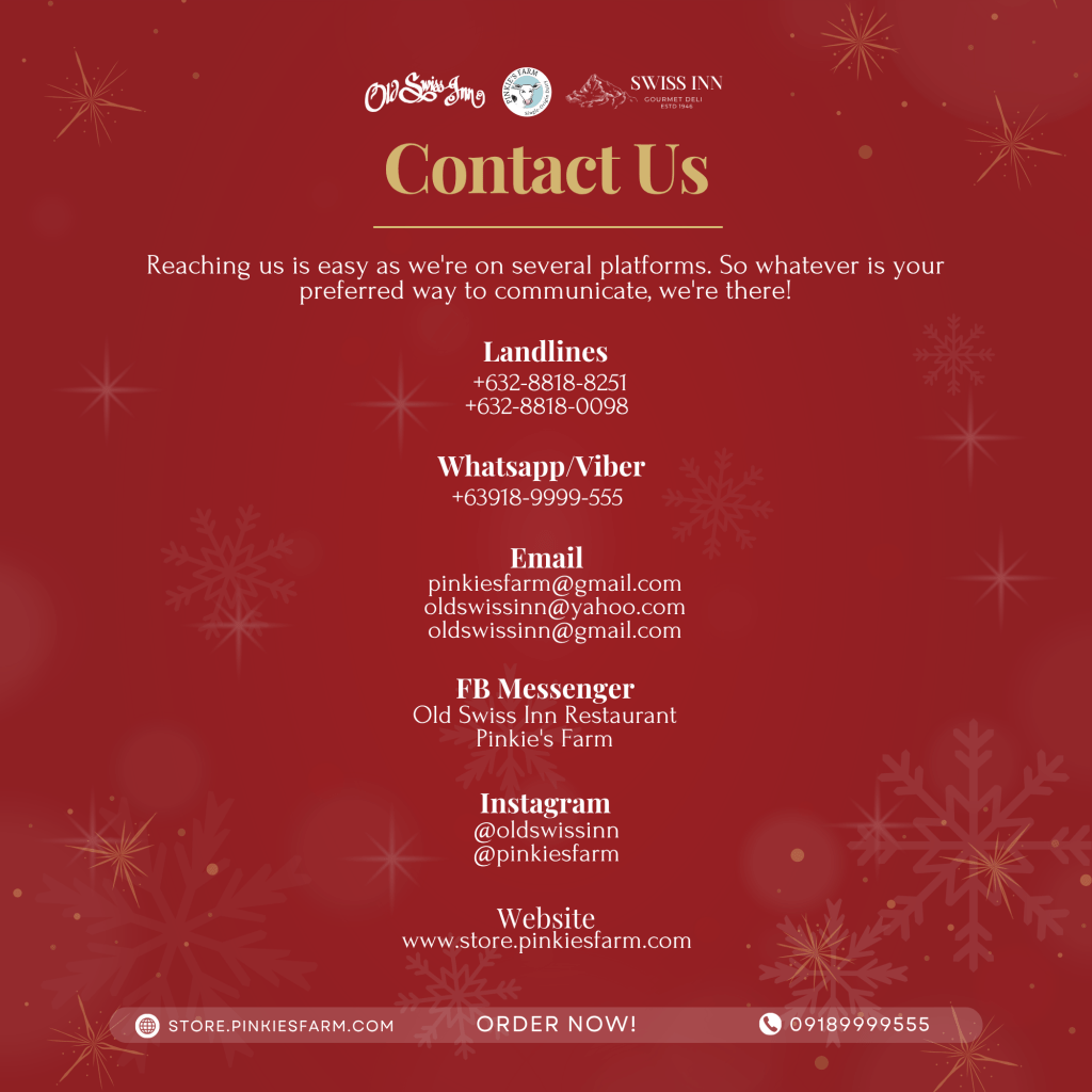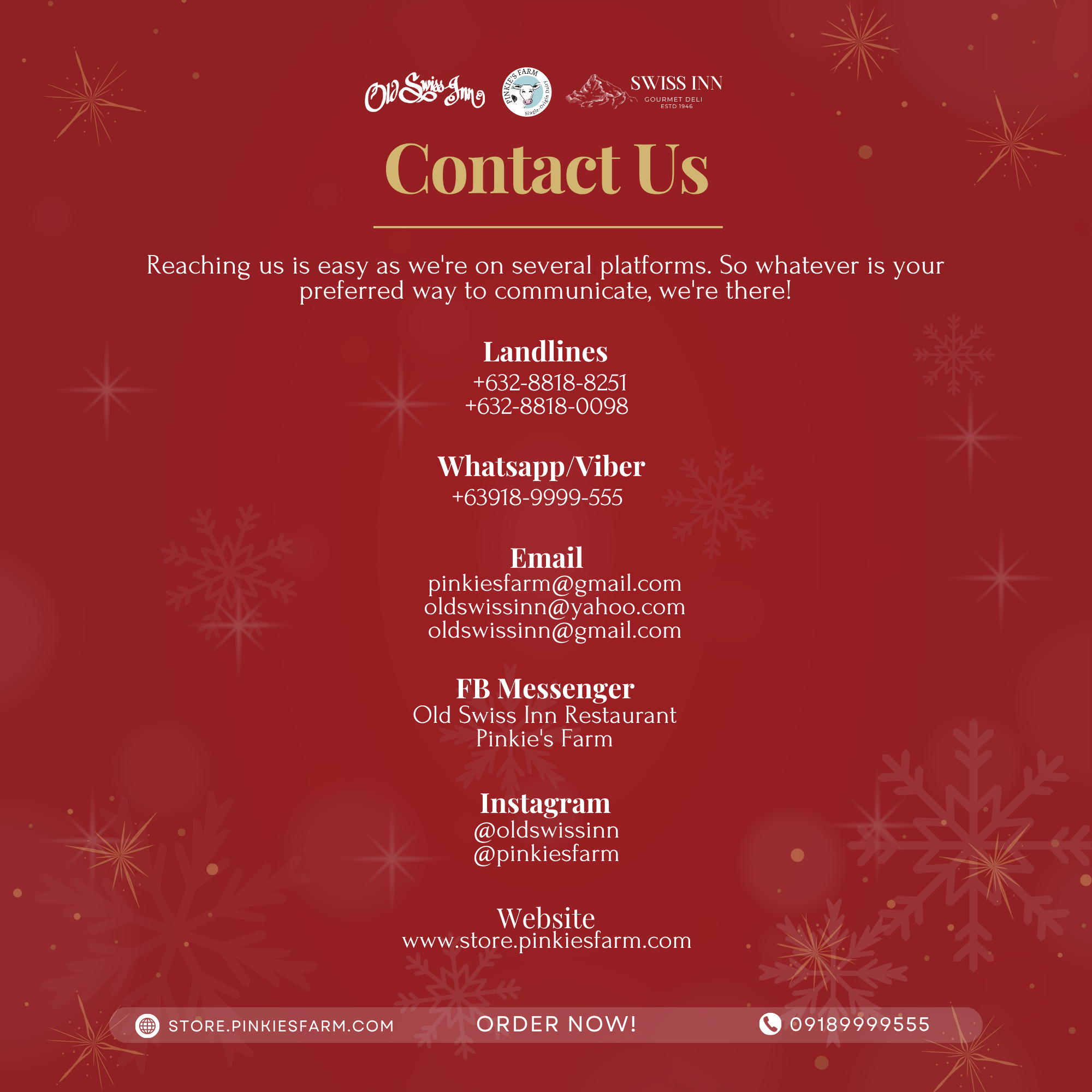 From timeless Old Swiss Inn feasts and Swiss Inn Gourmet Deli treats to farm-fresh holiday gifts from Pinkie’s Farm, we’ve crafted everything you need to make the season unforgettable. Enjoy our signature roasts and carvings, hams, artisanal take-home favorites, and healthy dairy delights — all perfect for family gatherings, holiday parties, and thoughtful gifting. Taste tradition, freshness, and joy this holiday season. ❄️✨