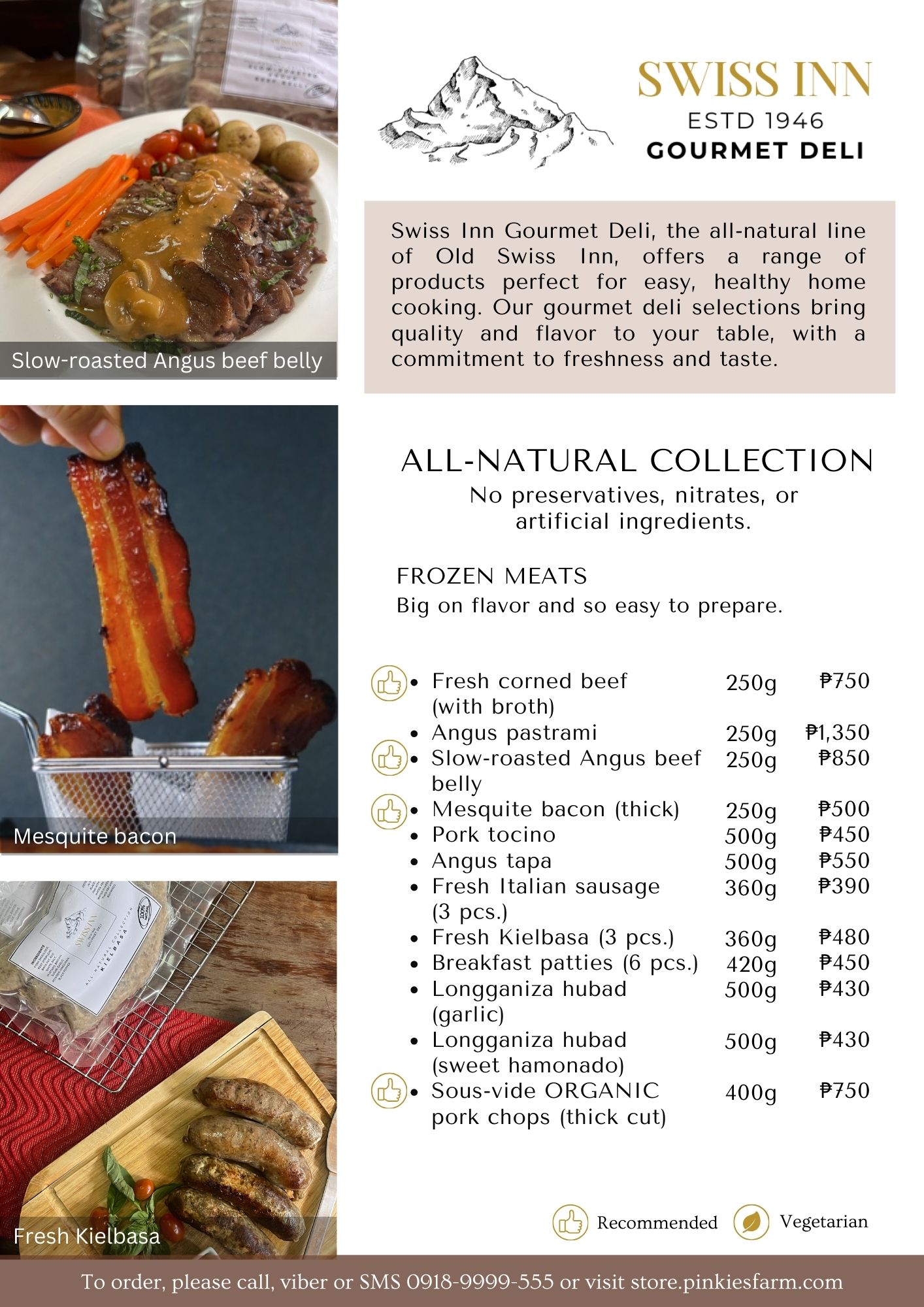 With today’s changing tastes and preference for minimally processed food, Swiss Inn’s Gourmet Deli line promises to deliver the same robust flavors but without using commercial flavor enhancers, additives, nitrates, or preservatives. All products from the All-Natural line boast of using whole spices and natural ingredients, without resorting to easy fixes with hard-to-pronounce chemicals.