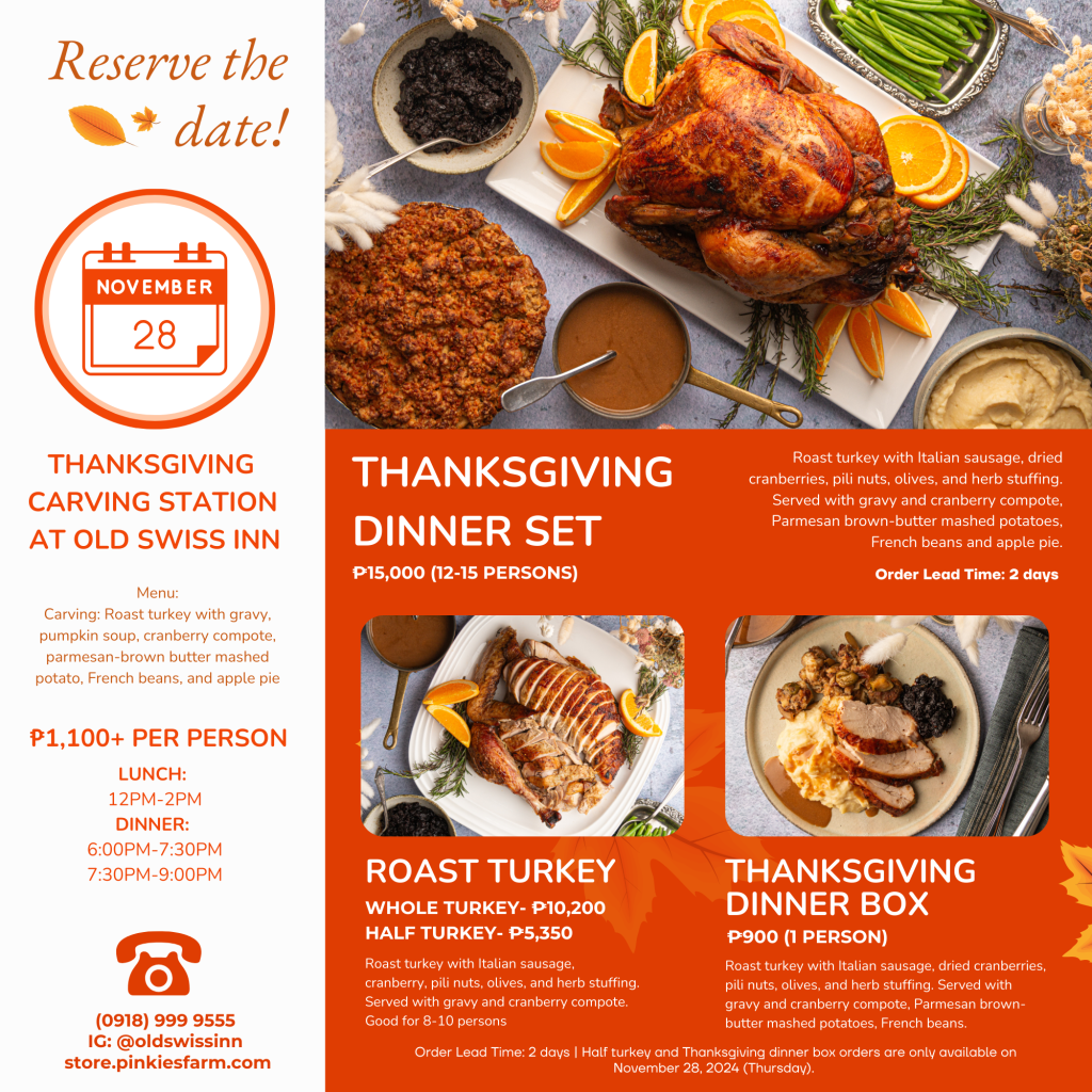 Make your Thanksgiving stress-free with Old Swiss Inn! 🎉